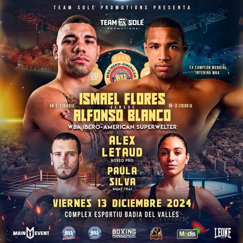 El próximo 13 de diciembre, los amantes del boxeo tendrán una cita imperdible en Badia del Vallès, cuando Ismael "El Terrible" Flores suba al ring en busca de su primer cinturón internacional: el título WBA Iberoamericano en la categoría Superwelter. Con un récord de 14 victorias (9 por KO), 1 derrota y 1 empate, Flores intentará conquistar el título frente a un adversario de renombre, Alfonso Blanco, quien con su experiencia y una carrera llena de logros promete ser un duro desafío. Blanco, excampeón mundial interino de la WBA, cuenta con 18 victorias (10 por KO), 3 derrotas y títulos como el WBC Silver Superwelter, además de medallas en campeonatos mundiales amateur.