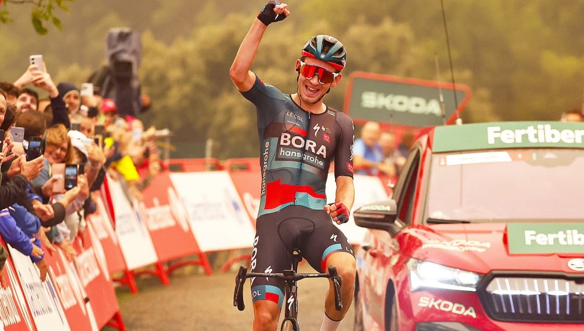 Lennard Kamna, celebrando su victoria en la novena etapa de La Vuelta@lavuelta