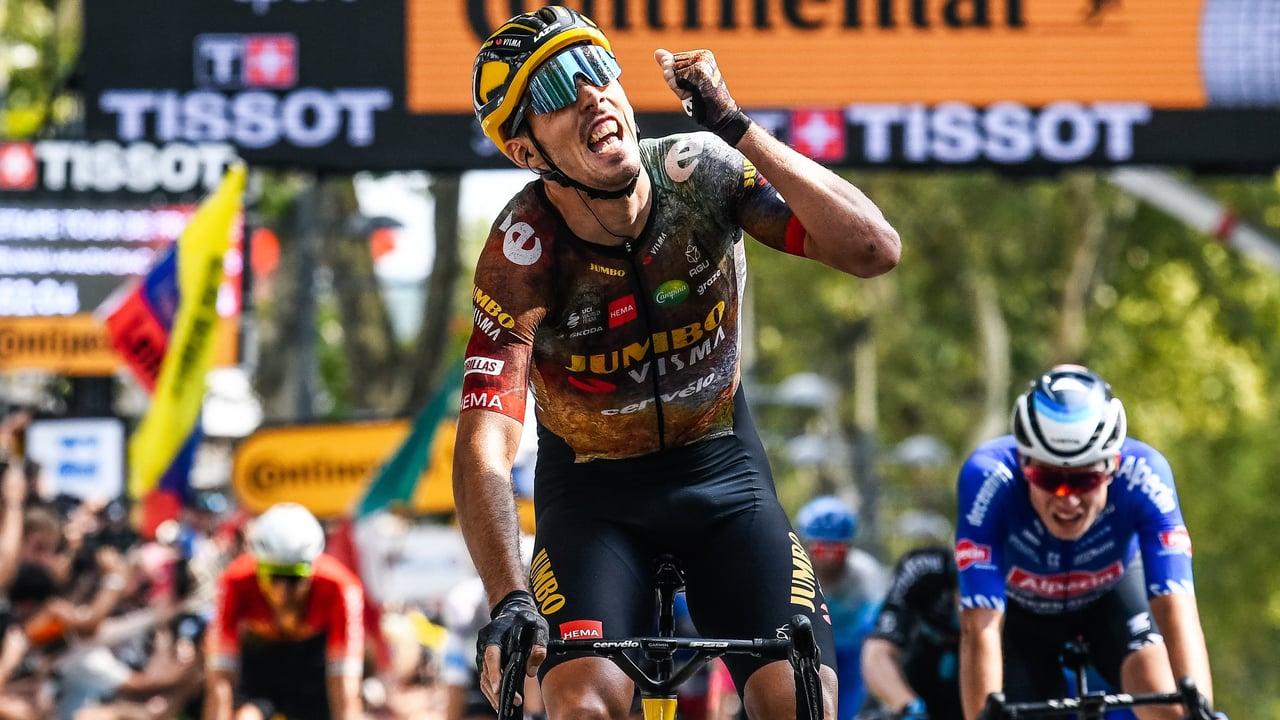 El último en levantar los brazos fue Alaphilippe, en la primera jornada del Tour 2021. Laporte se impuso con claridad llegando lanzado desde atrás, con el pelotón hecho un lío, un segundo delante del belga Jasper Philipsen, del italiano Alberto Dainese (DSM) y de Pogacar, quien entró a la disputa por velocidad.