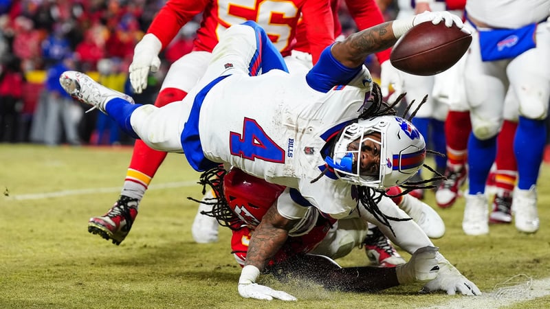 Si en el primer tiempo se jugó por aire, en el segundo lo que mandaron fueron los ataques terrestres, o más bien uno, el de los Bills. La defensa de Buffalo fue mucho más dura y eso lo aprovecharon a nivel ofensivo para, con un 'drive' maravilloso de Josh Allen, que corrió un cuarto 'down' que parecía imposible, y sobre todo, James Cook, que en el '4ª y gol' hizo un segundo esfuerzo brutal para con un salto batir a la defensa y anotar con una carrera que les permitió llegar al último cuarto con un punto de ventaja.