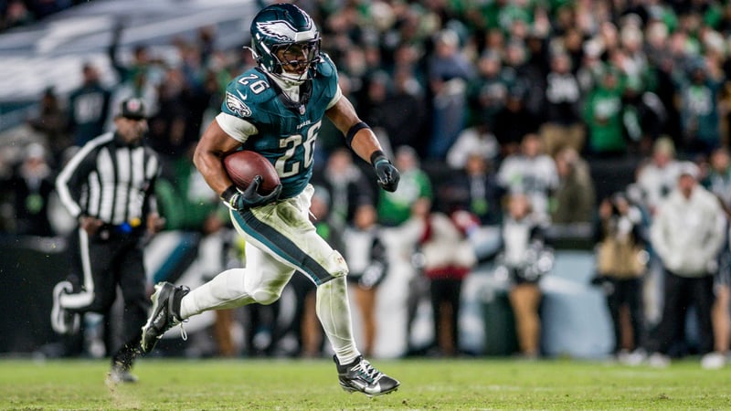 Los Philadelphia Eagles derrotaron 20-37 a Los Angeles Rams, una victoria, la séptima consecutiva, con la que ya acarician la clasificación para los 'playoffs'. Con su triunfo en Los Ángeles, los Eagles consolidan el liderato en la NFC Este con 9 victorias y 2 derrotas, por delante de los Washington Commanders (7-5). La actuación estelar fue de Saquon Barkley, que se erigió como la figura del partido con 255 yardas de carrera -récord personal y de la franquicia- que le sirvieron para sumar dos 'touchdown'. Nadie había corrido tantas yardas en un partido de la NFL desde Jamaal Charles en 2010 con los Kansas City Chiefs. Por su parte, el QB de los Eagles, Jalen Hurts, completó 15 de 22 pases -uno de ellos de 'touchdown'- para 179 yardas y corrió 39 yardas. Y el de los Rams, Matthew Stafford, completó 24 de 36 -dos de ellos de 'touchdown'- para 243 yardas., que no fueron suficientes para hacer frente al vendaval ofensivo rival.