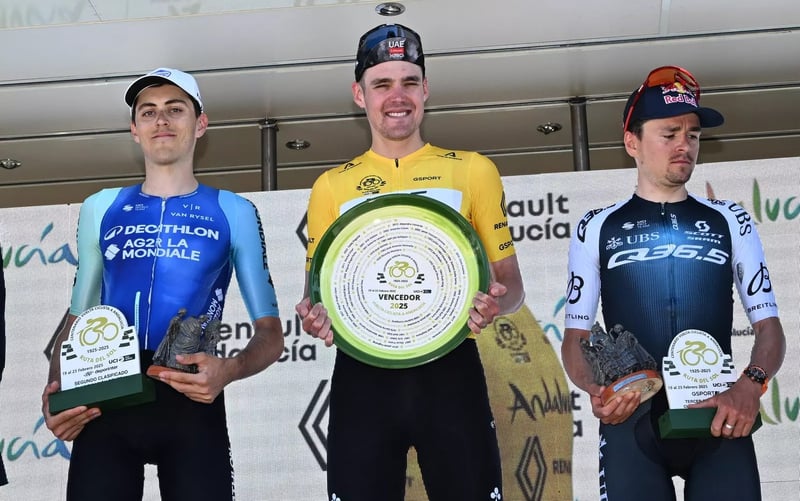 Tras esta última etapa, las cosas no han cambiado mucho en las primeras posiciones de la clasificación, en la que Sivakov llegaba como el claro candidato. Y así lo ha confirmado, después de proclamarse campeón de esta competición con un tiempo final de 19:41:06. El francés logró colocarse como líder de la clasificación en la segunda etapa y desde entonces ha podido mantener la posición para ganar la 71 edición de la Vuelta Ciclista a Andalucía. En el podio le han acompañado Thomas Pidcock, a 0:23 segundos, y Clément Berthet, también con 23 segundos de diferencia.