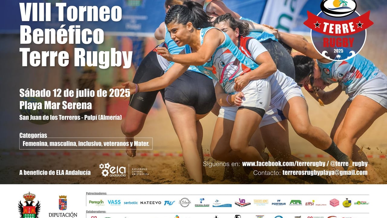 El VIII Torneo Benéfico de rugby-playa TERRERUGBY se celebra el 12 de julio en San Juan de los Terreros (Almería) y destinará su recaudación a ELA Andalucía, ayudando a los a 4.500 pacientes en España de Esclerosis Lateral Amiotrófica (ELA)