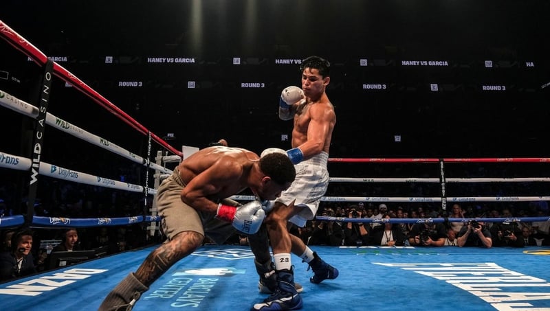 Pero éste no llegó, Haney controló durante unos asaltos la pelea sin hacer mella en un rival que trataba de meter su poderosa izquierda y hacer daño. Y conforme avanzaron los minutos el que ganaba terreno era Ryan García. A Devin Haney lo mandó tres veces a la lona, la primera de ellas en el séptimo asalto y, luego, aún hincaría por dos veces más la rodilla -en el décimo round y en el undécimo-, pero logró resistir en busca de una mano salvadora que diera la vuelta al combate.