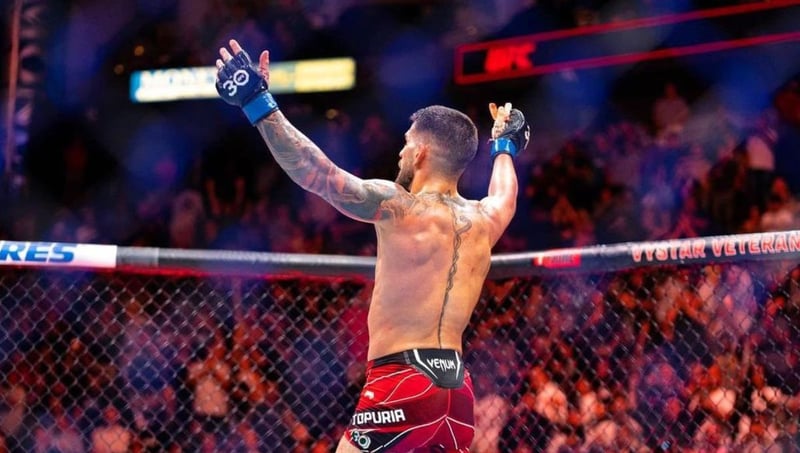 "Lo visualizo como lo he visualizado hasta ahora. Me veo ganador de ese combate. Veo que mis sueños se van a hacer realidad y que voy a convertirme en el mejor luchador del mundo", reitera Topuria, quien no se fija en la última derrota de su próximo rival, ya que no cree que vaya a afectarle. "Una derrota siempre apesta. Como profesional pienso que es complicado aceptar una pelea con 10 días de antelación, moverte en un peso por encima, presentarte en el país del otro y aceptar tanta presión. Perdió, pero bueno, a esos niveles todo puede pasar y más con los 10 días de preparación. No sé cuál era el objetivo de aceptar la pelea. Pero no conocemos sus motivos", señala sobre la derrota de Volkanovski ante Islam Makhachev en el peso ligero.