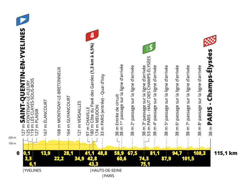 Habrá brindis en el equipo Jumbo y otros muchos celebrarán sus éxitos como Giulio Ciccone en la montaña, pero no por ello dejará de haber competición. Con un recorrido que se ha diseñado como guiño a los Juegos Olímpicos de París 2024, cuyas pruebas de todas las disciplinas ciclistas se celebrarán en gran medida en los Yvelines, nos espera una espectacular llegada masiva en la que los sprinter podrán lucirse; y sí, el favorito es Jasper Philipsen, quien a estar alturas acumula hasta cuatro triunfos. Recuerda que puedes consultar la información más completa sobre el Tour de Francia en ESTADIO Deportivo con nuestra guía de la carrera.