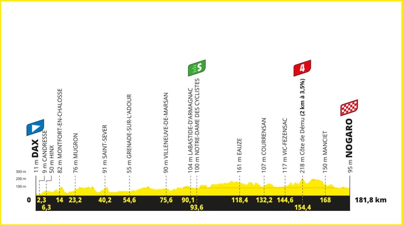 El Tour de Francia le da este martes otra oportunidad a los sprinters del pelotón. Este lunes se estrenó el belga Jasper Philipsen. Pero ya en la cuarta etapa, que discurrirá íntegramente ya por territorio Frances entre las localidades de Dax y Nogaro durante 181,8 kilómetros, habrá una segunda oportunidad. Esta etapa constará de una pequeña cota la de Demu, de cuarta categoría y que se encontrará a 27 kilómetros de meta. Los ciclistas empezarán a rodar a partir de las 13:20.