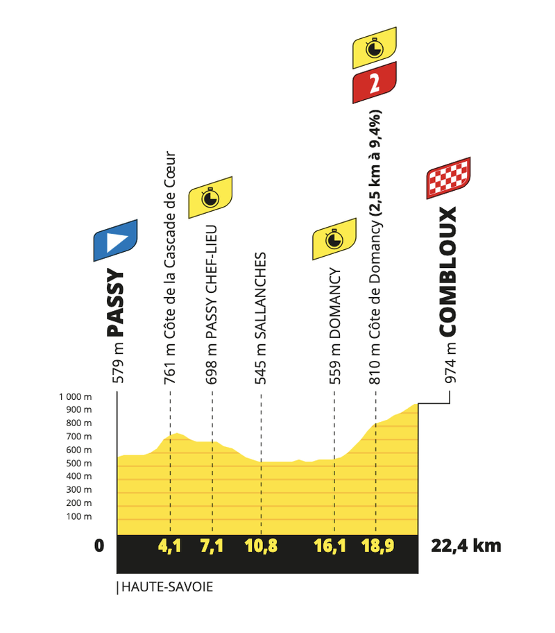 Aunque parece poca distancia para que uno de los dos sentencie la Grande Boucle –sobre todo porque se les ve muy igualados en fuerzas–, el hecho de que deban encarar una subida de 2,5 kilómetros con una pendiente media del 9,4% hace que haya que estar muy atentos por si alguno de los dos desfallece. Además, la ascensión de Domancy también será clave para la lucha por el podio. En estos momentos Carlos Rodríguez es tercero, pero solo tiene 19 segundos de ventaja sobre Adam Yates. El quinto, Jai Hindley, está ya a 1.37 minutos del ciclista andaluz.