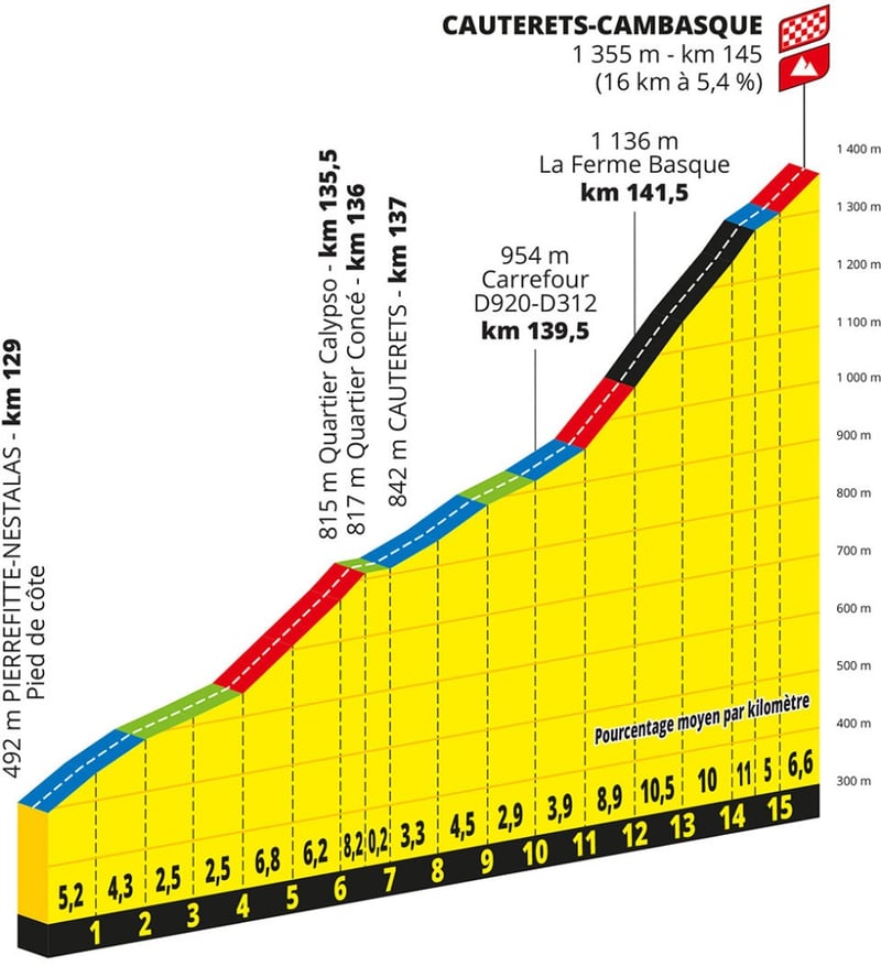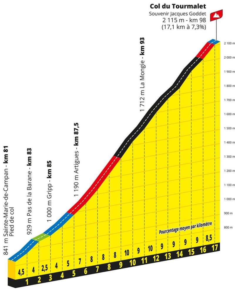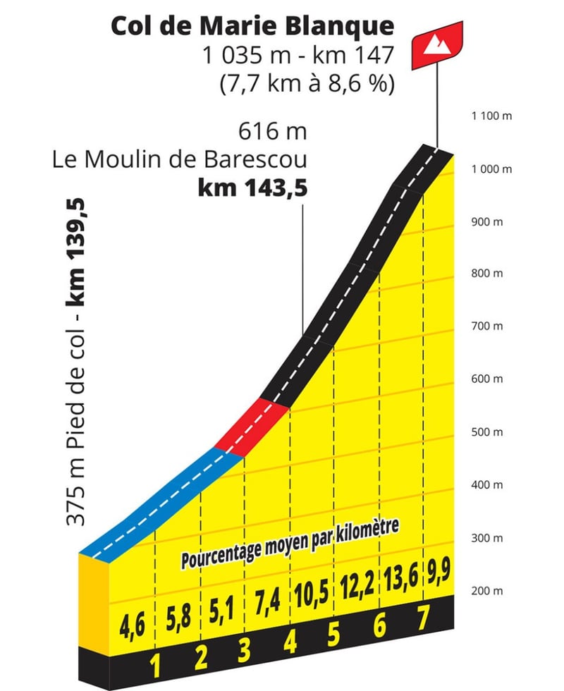 Primer día para medir fuerzas entre los favoritos. Los más de 15 kilómetros del Col de Soudet calentarán las piernas antes de que la primera etapa de montaña del Tour se decida en el Marie Blanque, una ascensión de 7,7 kilómetros al 8,6%. No será un día decisivo con todo lo que quedará por delante y teniendo en cuenta lo que llega al día siguiente, pero sí uno que permita que todos se sitúen de cara a la batalla de la Grand Boucle. Por cierto, tampoco se puede descartar que aún escapado culmine con victoria la que sería una fantástica exhibición.