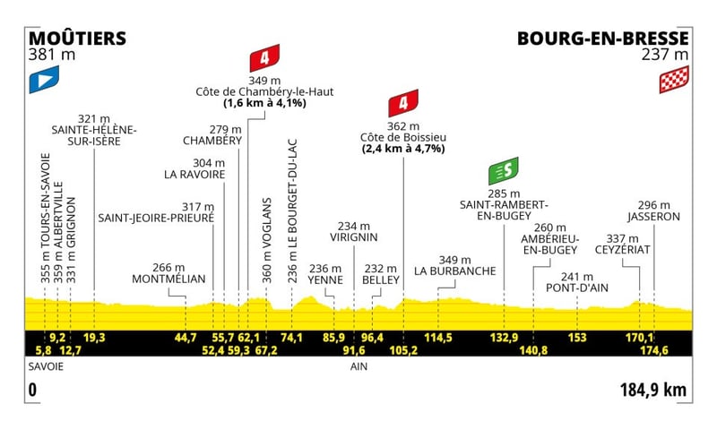 Los sprinters que hayan superado a estas alturas las enormes montañas de pasadas jornadas tendrán aquí su oportunidad. Dejando atrás los Alpes, podrán recoger su recompensa con un recorrido prácticamente plano que les conducirá hasta Bourg-en-Bresse y, a uno de ellos, hasta la gloria.