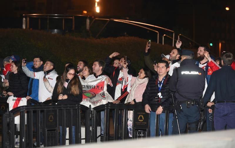 Pese a la convocatoria de la peña Filial Madrid Club Atlético River Plate, apenas una veintena de aficionados se dio cita a las puertas del hotel para recibir a sus jugadores, a los que se vio con caras de cansancio tras un largo viaje desde Buenos Aires.