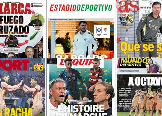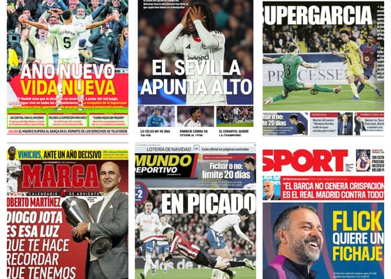 El Sevilla apunta alto en el mercado de fichajes, el Real Madrid espera cambiar el rumbo en 2026, Joan García salva al Barcelona... Así vienen las portadas del 23 de diciembre