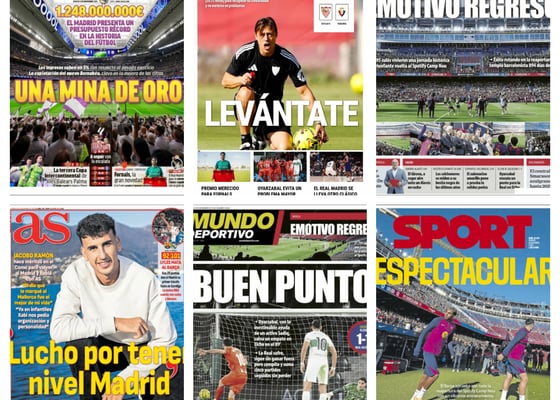 Oportunidad de oro para el Sevilla, presupuesto récord en el Real Madrid, el Barcelona regresa al Camp Nou... Así vienen las portadas de la prensa deportiva