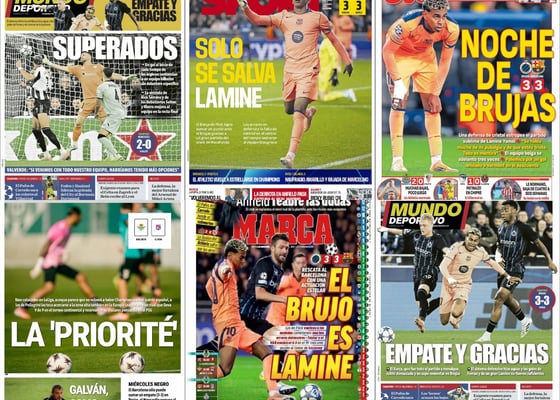 Lamine Yamal rescata al Barça, ‘La Priorité’ en el Betis, el banquillo del Sevilla vibra, tropiezo europeo del Athletic… Así vienen las portadas del jueves 6 de noviembre