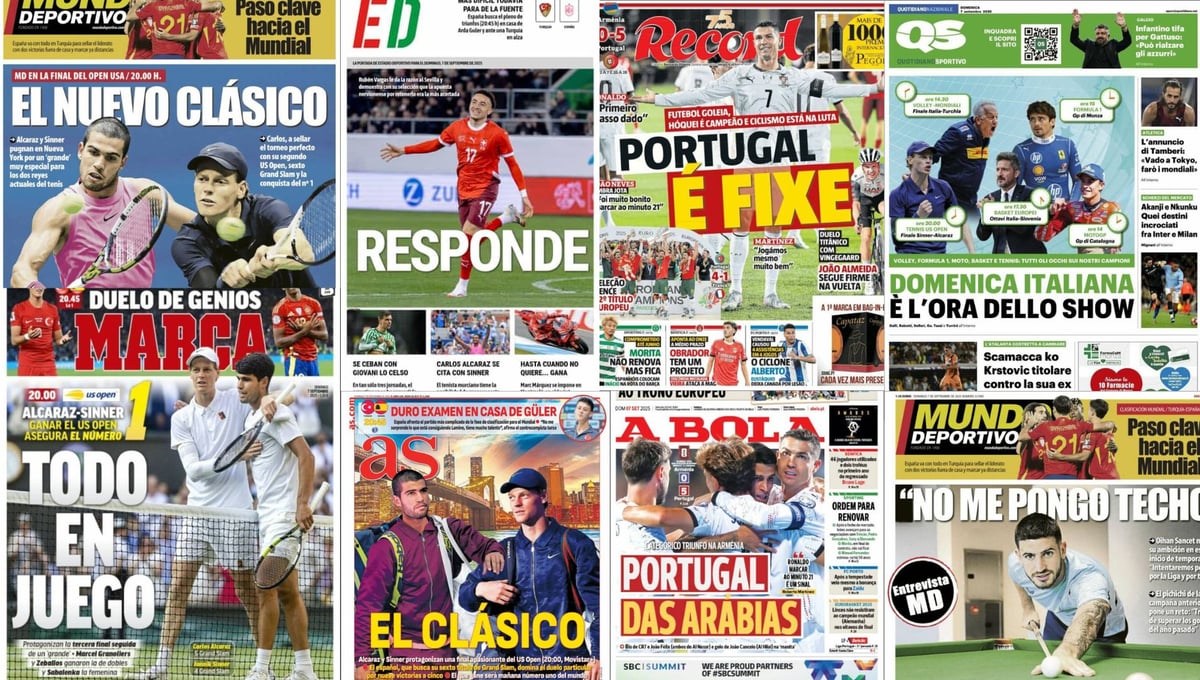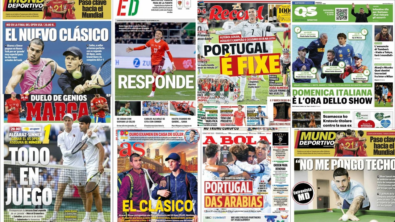 Las portadas deportivas del domingo 7 de septiembre están marcadas por el partido de esta tarde entre Alcaraz y Sinner