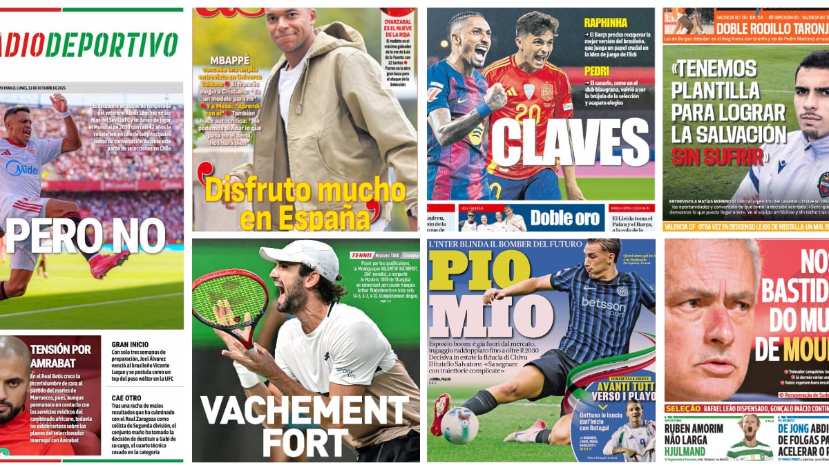 Alexis Sánchez, Amrabat, Mbappé, Pedri, Pogacar, Vacherot, La Finalissima... las portadas del lunes 13 de octubre de 2025