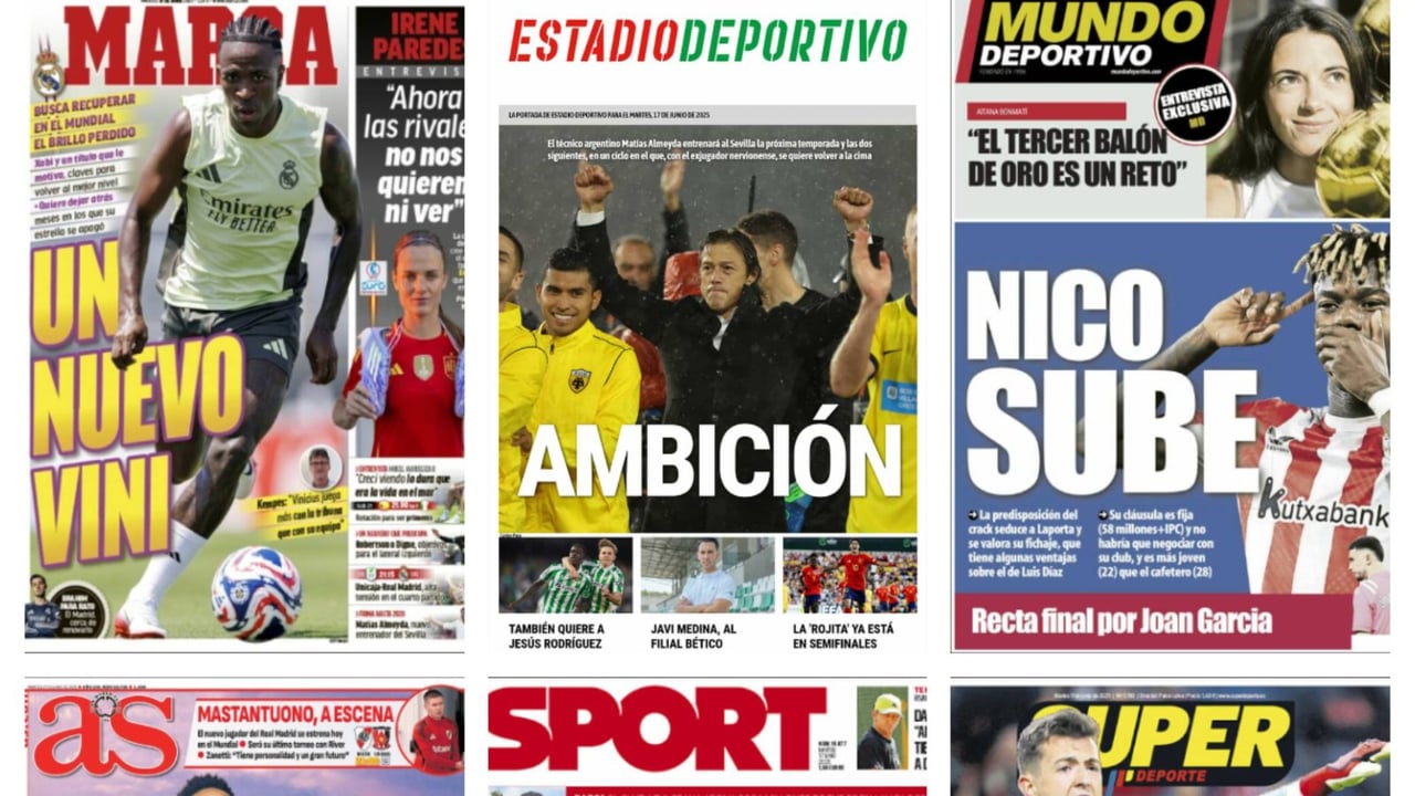 Arranca un nuevo día y con él salen a la luz las diferentes portadas de los medios nacionales deportivos. Sevilla, Real Madrid y Barcelona vuelven a ser, un día más, los protagonistas de la información deportiva en España. Los andaluces se ilusionan con el nuevo proyecto encabezado por el ex jugador, Matías Almeyda, y ven en los ojos del técnico ambición de cara a las próximas temporadas. Por otro lado, el Real Madrid espera su turno en el Mundial de Clubes para estrenarse ante el Al Hilal con la defensa completamente recuperada y con el debut de Xabi Alonso en el banquillo. A su vez, el culebrón de Nico Williams tiene cuerda para rato y el Barcelona vuelve a señalarlo como una prioridad de cara a este mercado de fichajes.