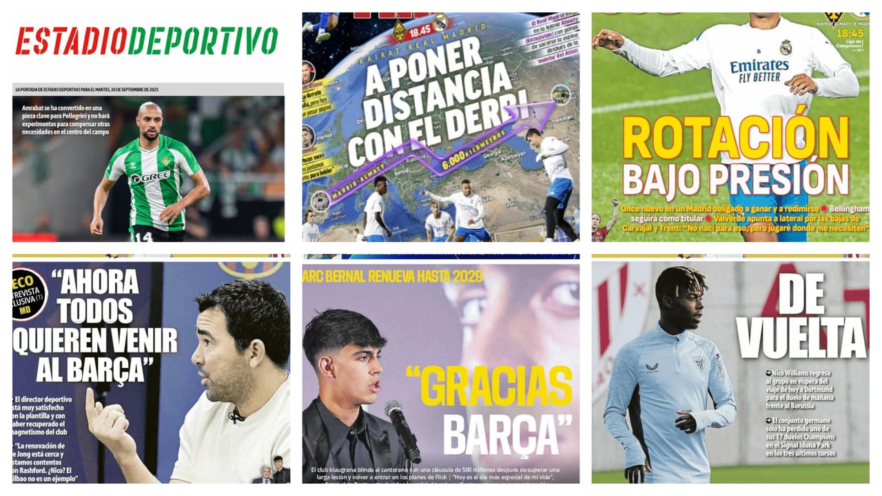 Amrabat, Carmona, la Champions... así llegan las portadas de este martes 30 de septiembre de 2025