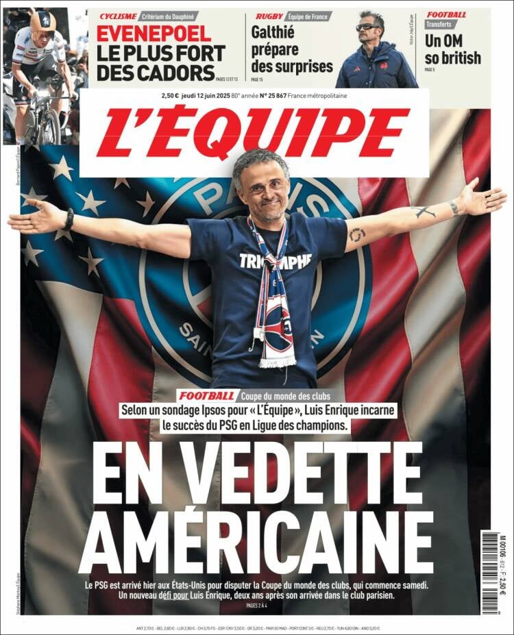 Por último, en la prensa internacional, L'Equipe da mucho protagonismo a los objetivos del PSG de Luis Enrique en la cita mundialista que se celebrará en los Estados Unidos. Por su parte, A Bola abre su cabecera con la despedida de Otamendi que se dará tras su último torneo.
