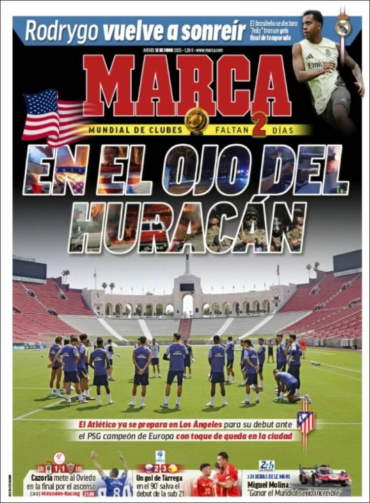 Las portadas deportivas de este jueves 12 de junio de 2025 vienen marcadas por el inicio del Mundial de Clubes y la próxima ventana de transferencias. El mercado sigue moviéndose, y nos está dejando operaciones destacadas que copan muchas de las principales cabeceras de nuestro país. El FC Barcelona ya ha cerrado el fichaje de Joan García; y ahora centra los tiros en sumar un nuevo lateral izquierdo que compita con Balde. Por su parte, el Real Betis está trabajando a destajo para firmar a Junior Firpo; mientras que parece que Imanol Alguacil se aleja del Sevilla FC. Además, el Real Madrid y el Atlético tienen puesto el foco en la cita mundialista que comenzará el próximo 15 de junio.