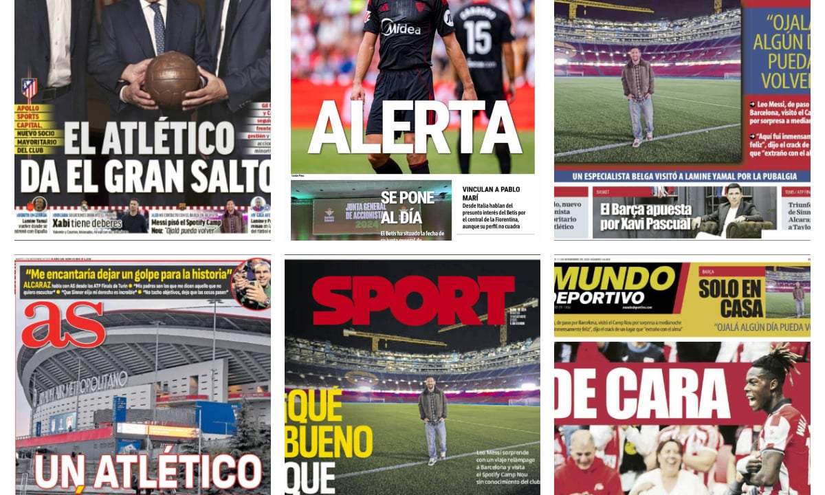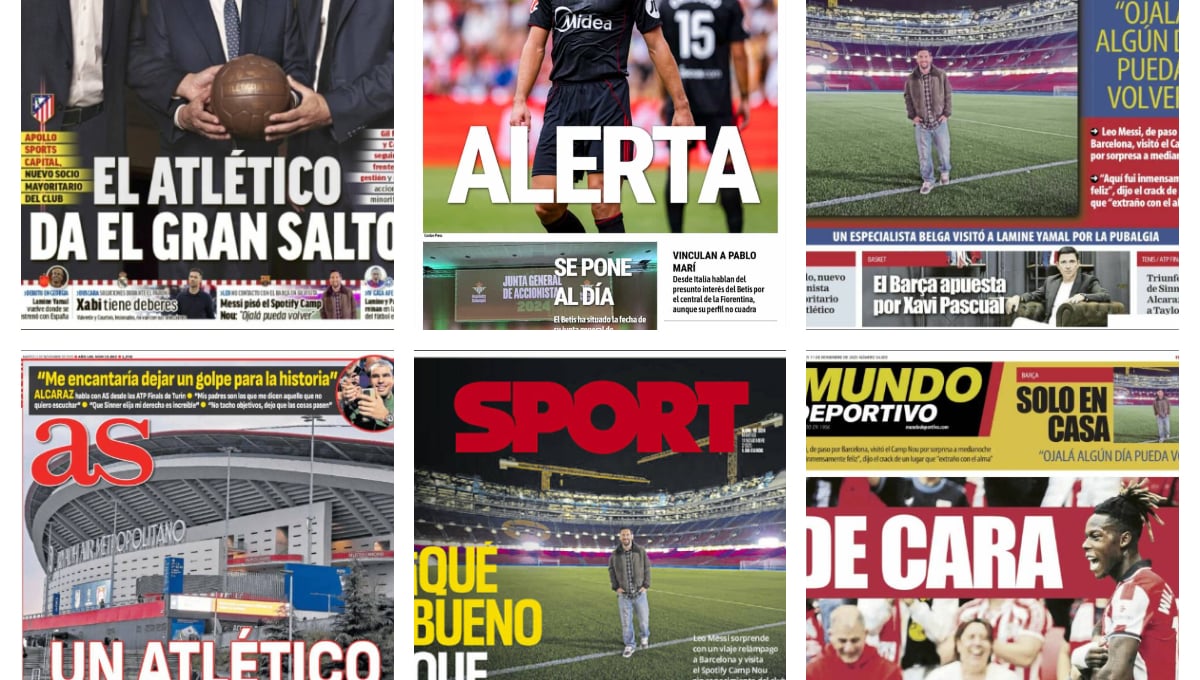 El Sevilla, el Atlético de Madrid y Leo Messi protagonizan las portadas de la prensa deportiva nacional. El club hispalense podría perder a Azpilicueta de cara al derbi frente al Real Betis. Por otro lado, el conjunto colchonero ya ha cerrado su venta a Apollo Sports Capital, a la misma vez que se filtró la vuelta de Leo Messi al Camp Nou.