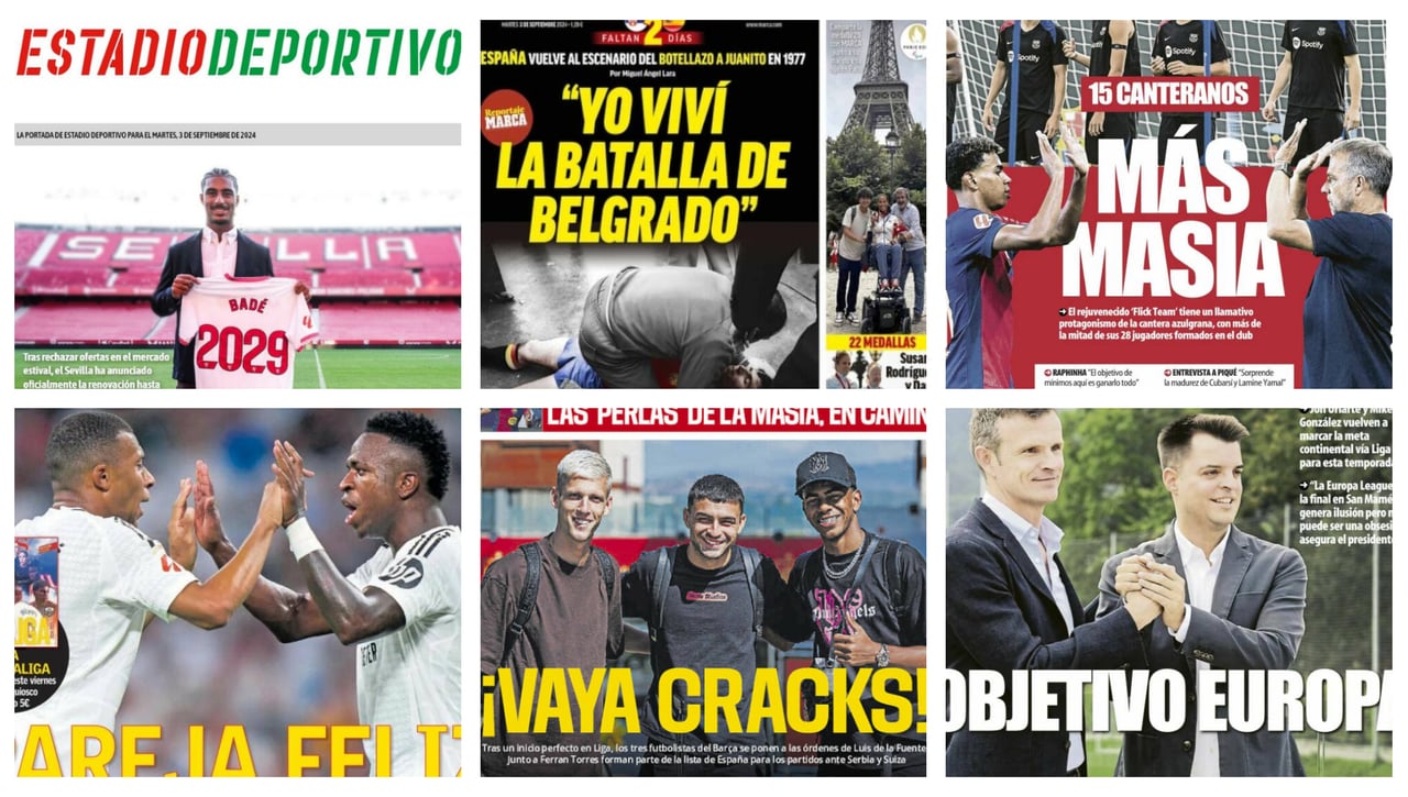 Badé, Johnny Cardoso, Ocampos, la Selección Española... las portadas de este 3 de septiembre de 2024