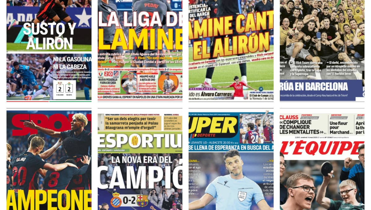 El Barcelona conquista LaLiga, Europa casi imposible para el Valencia, clasificación del Athletic Club para la Champions o la derrota del Atlético: así vienen las portadas
