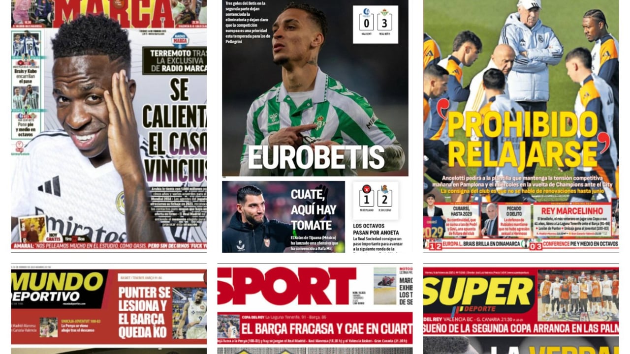 El Betis despierta en Europa, la oferta de Arabia por Vinícius Jr, la renovación de Cubarsí... Así vienen las portadas del día 14 de febrero