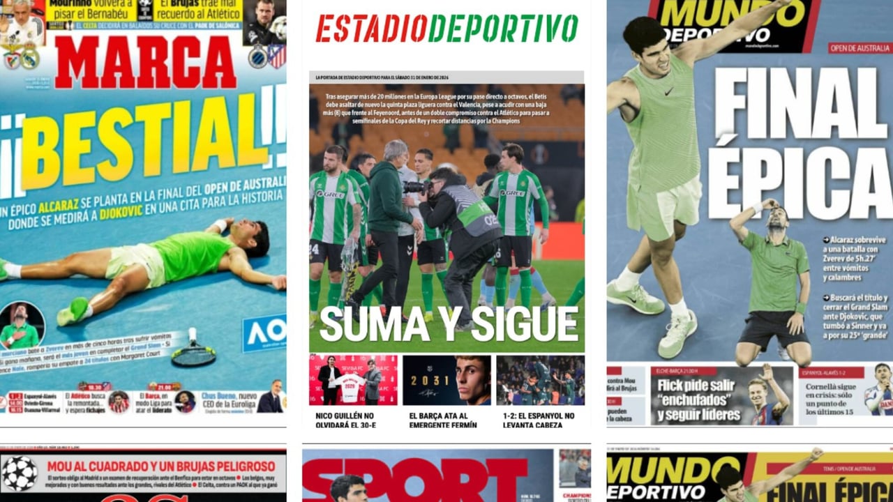 El calendario del Betis, la final de Australia con la épica de Alcaraz en semifinales y el Espanyol protagonizan las portadas del 31 de enero