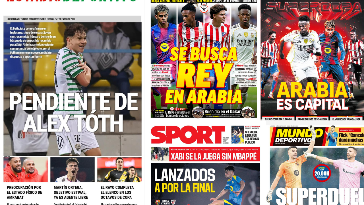 El Betis pendiente a Alex Thót, la Supercopa en Arabia, el triunfo de Shareina... así llegan las portadas deportivas este 7 de enero de 2026Kiosko.net