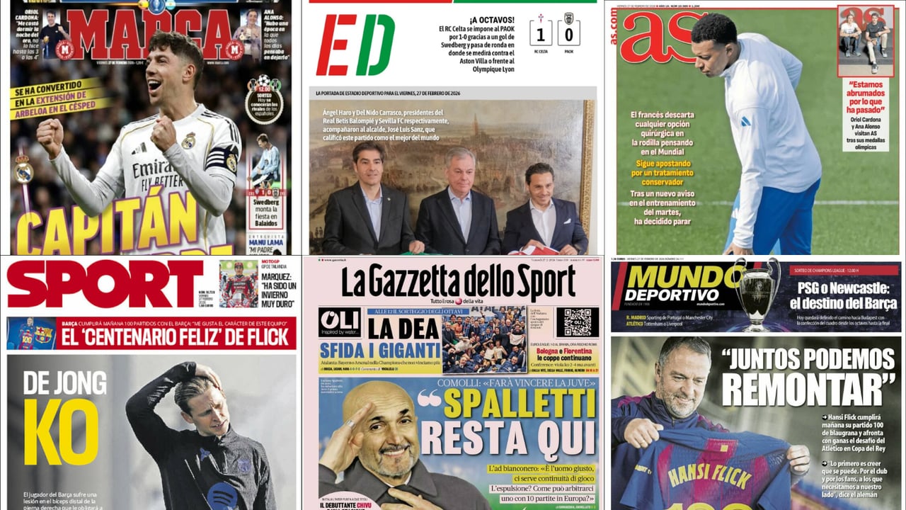 El capitán Valverde, soluciones para Mbappé, la remontada de Flick y ya huele a derbi, así vienen las portadas hoy
