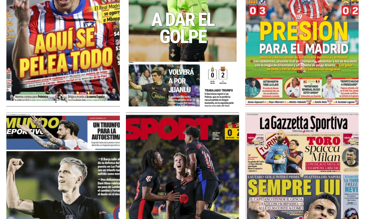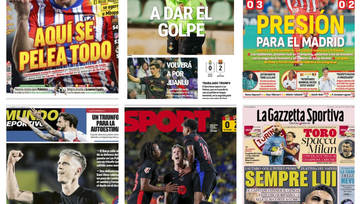 La contundente victoria del Atlético en Mestalla, Olmo al rescate del Barça, el Betis preparado para asaltar puestos europeos... así vienen las portadas de hoy