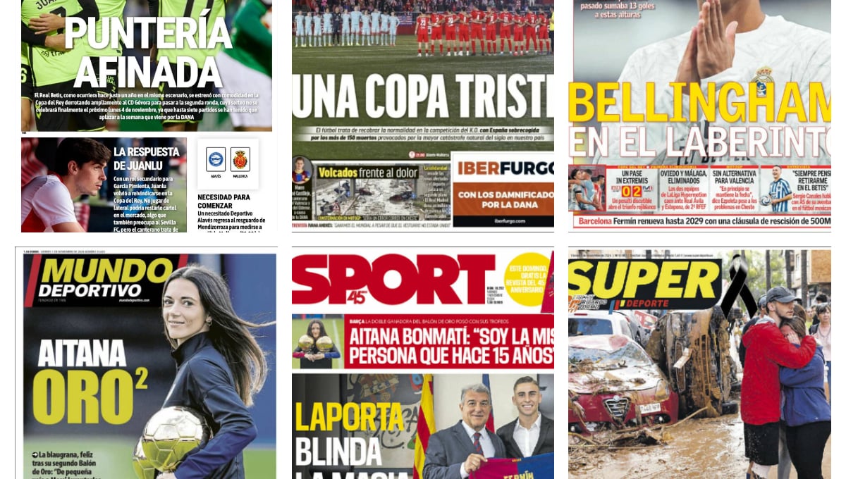 La disputa de una Copa del Rey marcada por la DANA, el Balón de Oro de Aitana Bonmatí o el mal momento de Bellingham son algunos de los temas repasados en las portadas