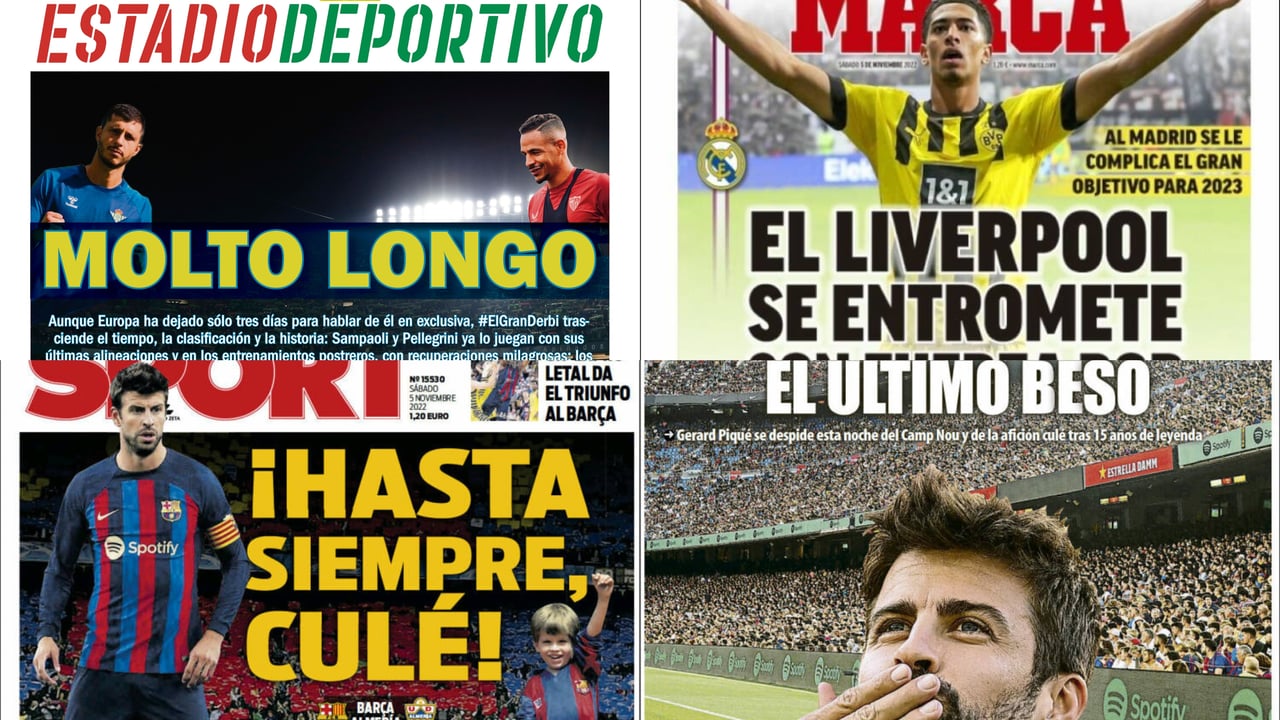 Un derbi 'molto longo', el adiós de Piqué, el 'robo' del Liverpool al Madrid... Así vienen las portadas