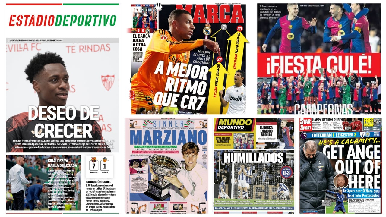 El deseo de Lokonga, salida de Iker Losada, Sinner, Mbappé, fiesta, humillación, vergüenza... portadas del lunes 27 de enero 2025