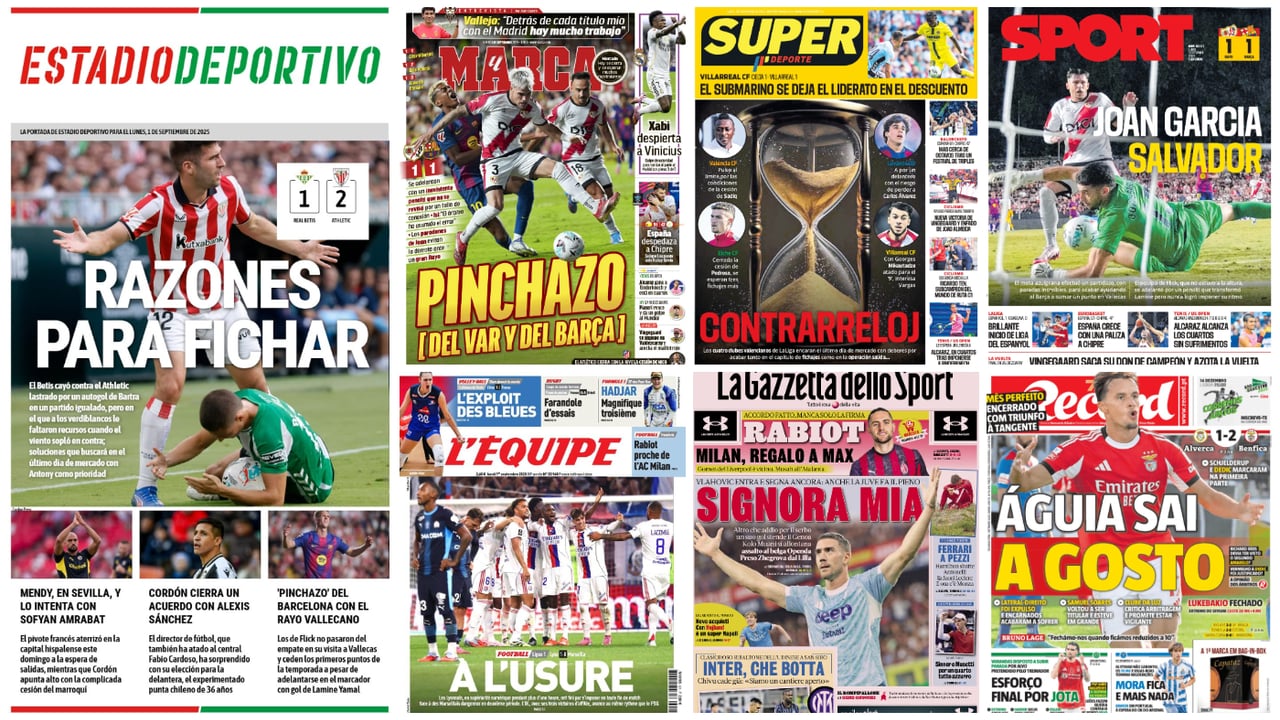 El repaso de prensa a las portadas de los principales periódicos deportivos en este lunes, 1 de septiembre de 2025, debería estar casi monopolizado por el último día del mercado estival de fichajes con muchísimos deberes por hacer en casi todos los clubes españoles. Sin embargo, el escándalo vivido el domingo en Vallecas deja a LaLiga EA Sports a la altura del betún. El bochorno ha tenido eco a nivel mundial: el propio árbitro reconoció a los jugadores del Rayo que se equivocó al decretar un polémico penalti a favor del FC Barcelona y transformado por Lamine Yamal; pero no pudo rectificar porque no había imagen ni comunicación con el VAR, sistema que sólo funcionó en la segunda parte.