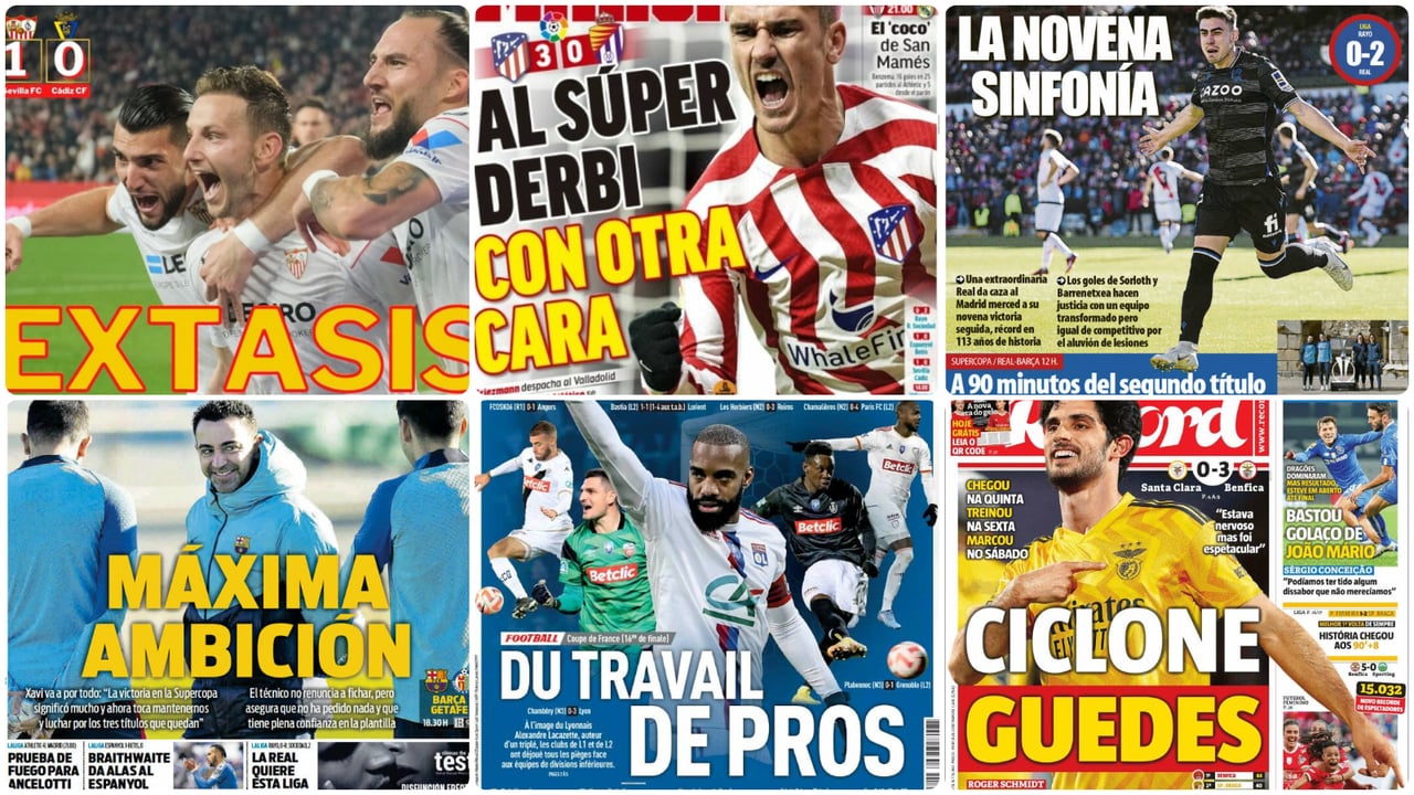 Éxtasis del Sevilla, semana negra en el Betis, Guedes, Griezmann, Ansu... las portadas del domingo