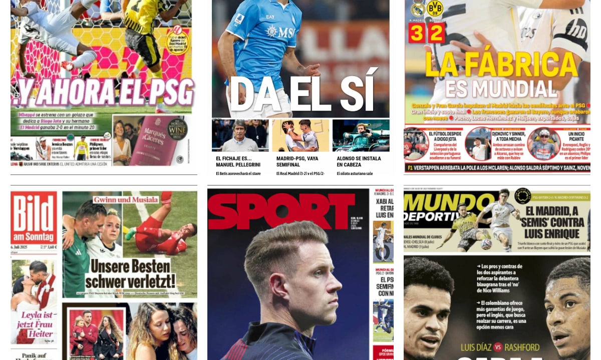 La Fábrica impulsa al Madrid. Con el titular “La Fábrica es Mundial”, el diario destaca el papel clave de Gonzalo y Fran García, canteranos del Real Madrid, en la victoria 3-2 sobre el Borussia Dortmund. El equipo de Xabi Alonso avanza a semifinales del Mundial de Clubes, donde se medirá al PSG de Luis Enrique.