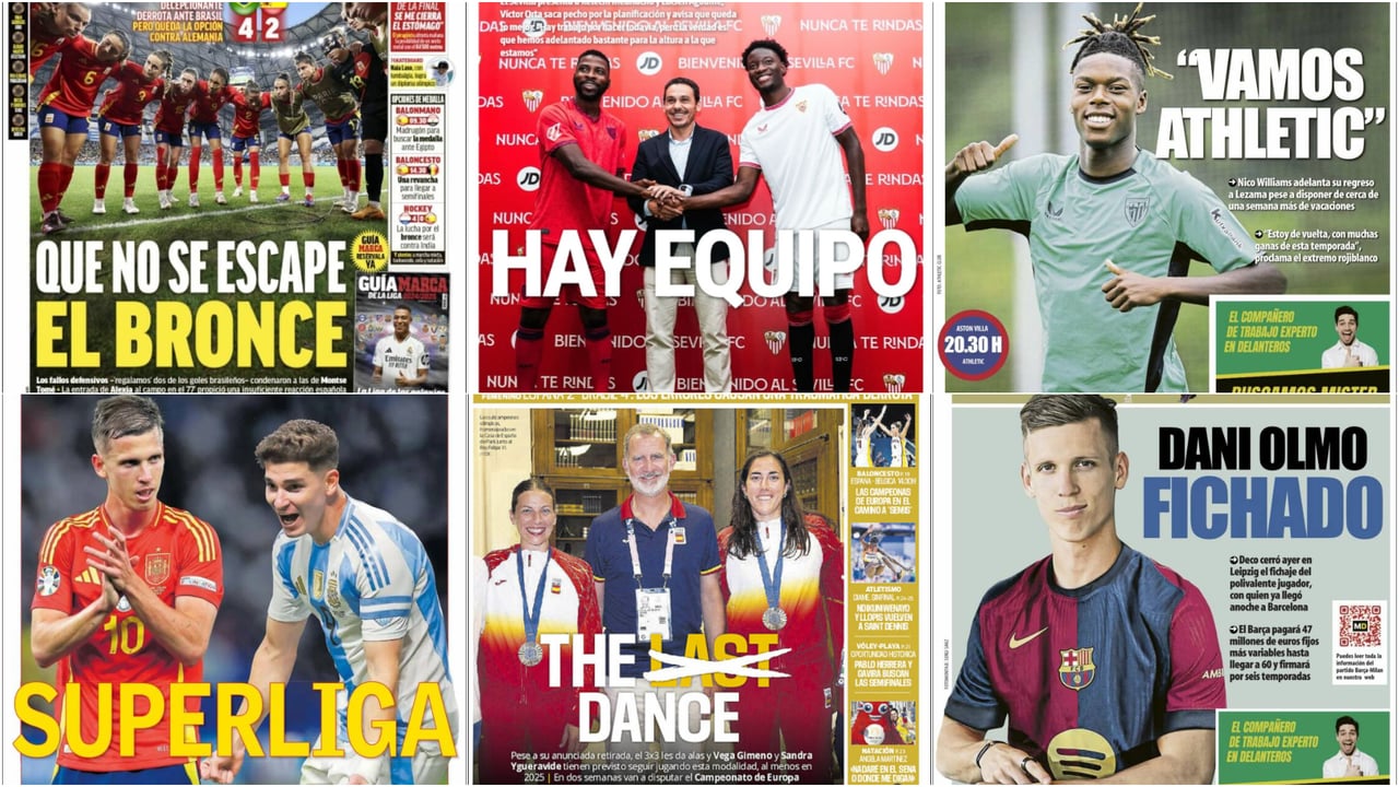 Fichajes 'bomba' en LaLiga, el traspié de la selección femenina, nuevas caras en Sevilla y Betis... Así vienen las portadas