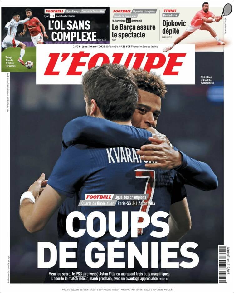 La ida de los cuartos de final de la Champions League es la temática principal de todas las cabeceras en España y en Europa; donde destacan la goleada del FC Barcelona, las opciones de remontada del Real Madrid y el paso al frente del PSG. Además, la cita con la historia del Real Betis en la Conference League también copa protagonismo