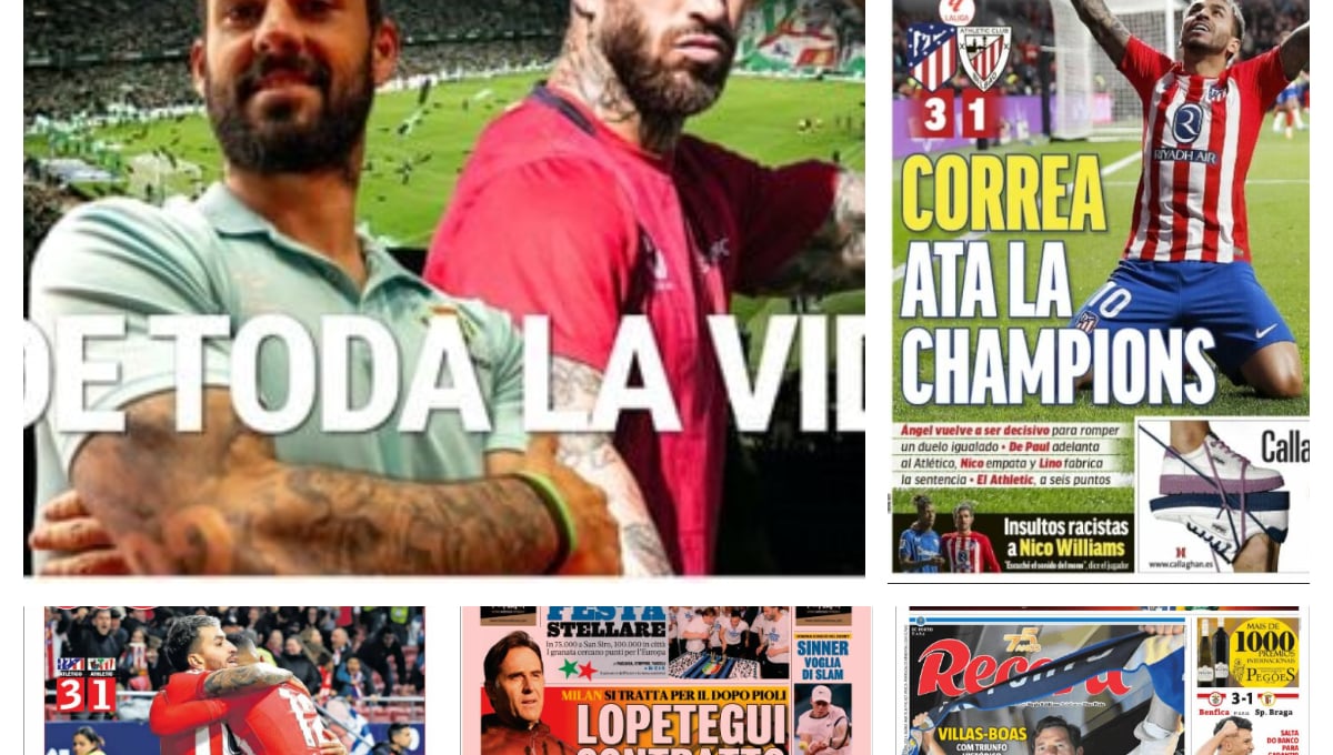 Los de Simeone lograron un triunfo balsámico en el Metropolitano, ante un Athletic de Bilbao que no levanta cabeza desde que conquistara la Copa del Rey. Los rojiblancos -madrileños- vencieron por 3 a 1 en un duelo disputadísimo que estuvo marcado por los insultos racistas a Nico Williams, que incluso obligaron a parar momentáneamente el duelo. Precisamente Nico igualó el gol inicial de De Paul, pero al poco de iniciar la segunda parte Correa decantó la balanza y muy cerca del final los locales ampliaron la renta para colar el marcador definitivo, que salvo debacle, les va a permitir estar en la máxima competición europea la próxima campaña, mientras que relega a sus oponentes a la Europa League.