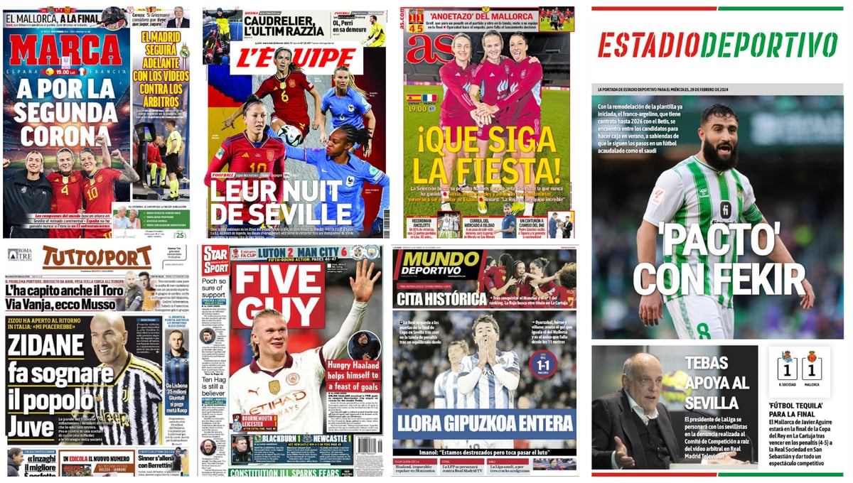 Gran noche en Sevilla, Anoetazo, vídeos anti-árbitros, Fekir, Haaland... portadas del miércoles 28 de febrero 2024