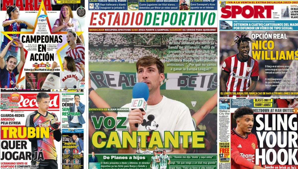 Así llegan las portadas de los diarios deportivos este viernes 15 de septiembre de 2023.