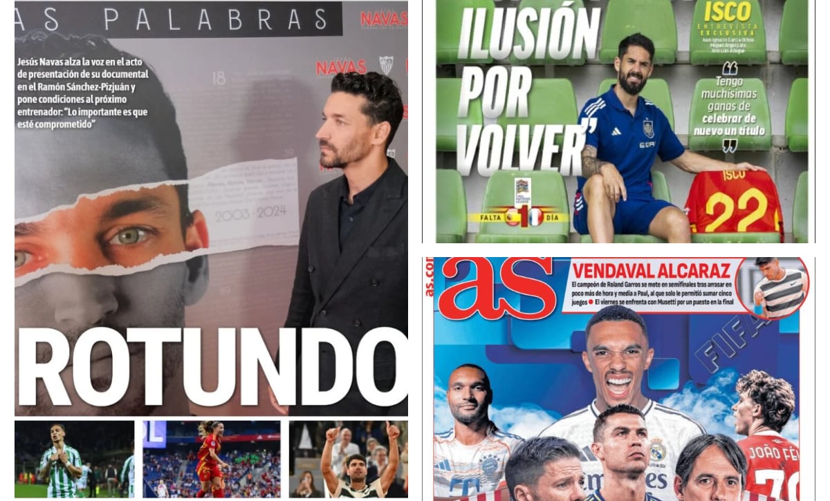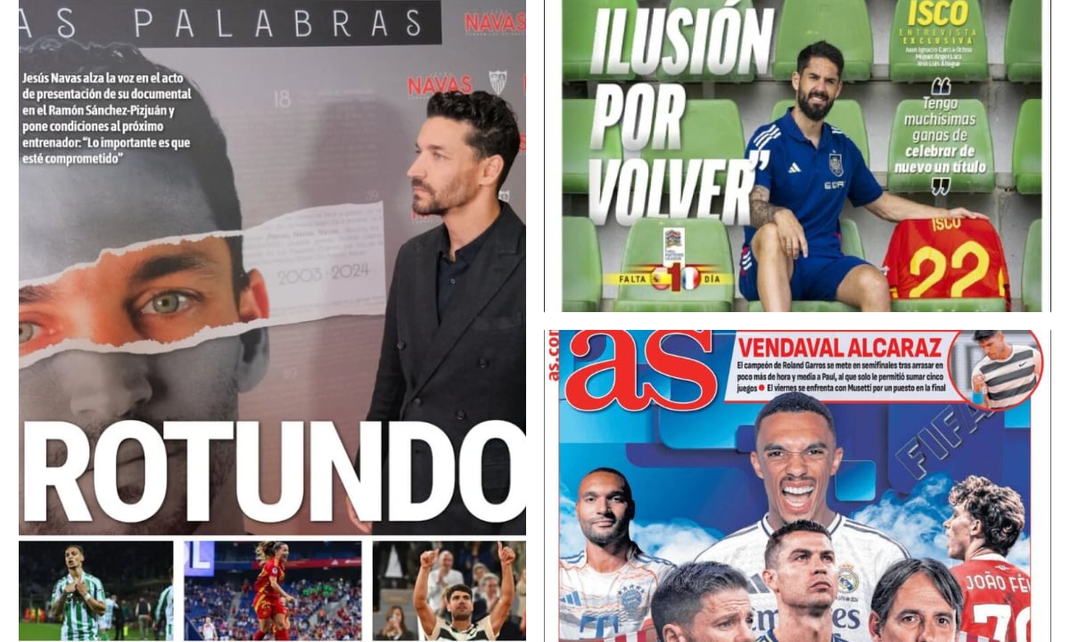 Jesús Navas alza la voz, la ilusión de Isco, el Mundial de Clubes desata la locura, Alcaraz arrasa...así vienen las portadas