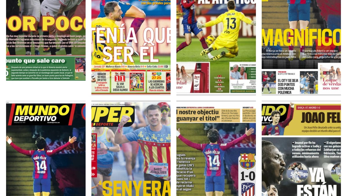 En la prensa catalana, más de lo mismo con el luso. "Joao Feliz" abre Mundo Deportivo y "Magnífico" titula Sport. Todo el protagonismo para el jugador del Barça.