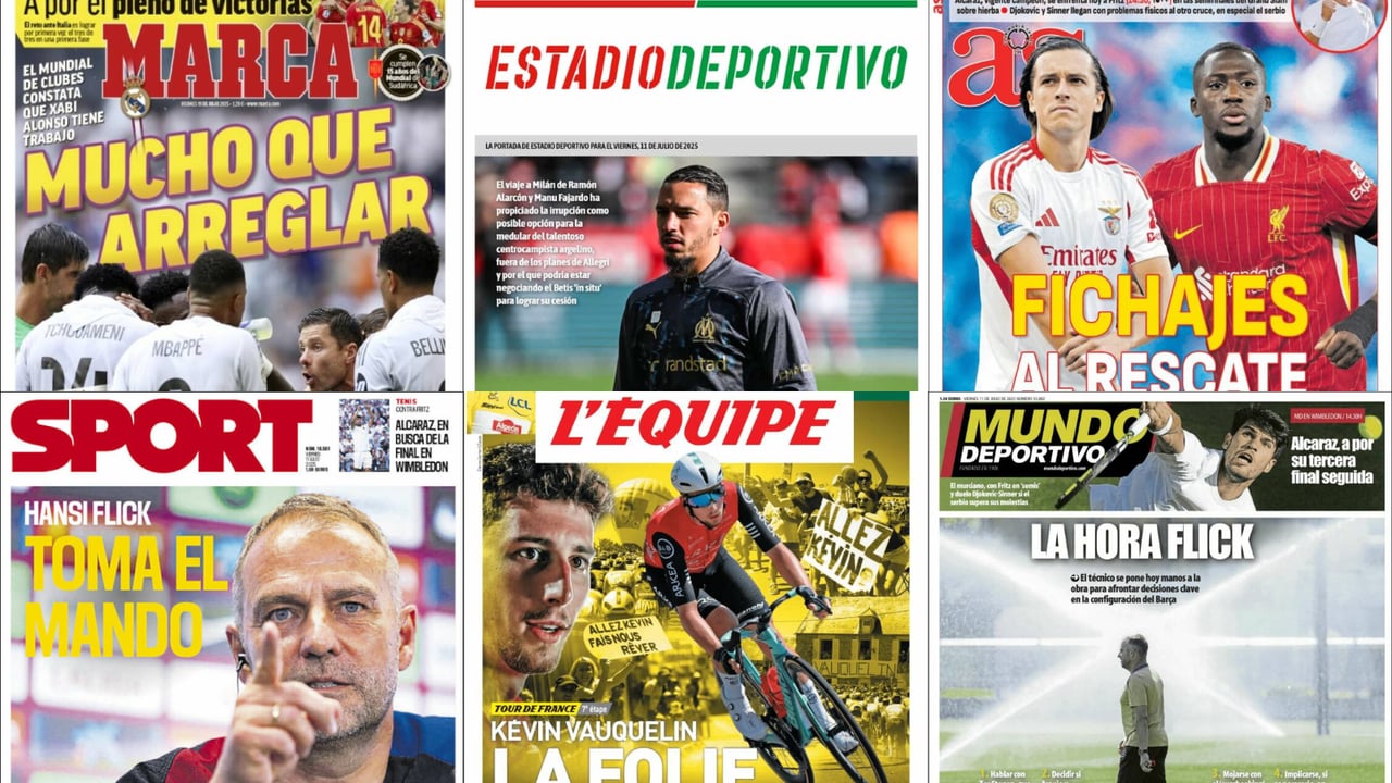 Las portadas del 11 de julio llegan cargadas de deporte, con mucho fútbol y cierto espacio para el Tour de Francia. Así en el diario MARCA apuntan que 'Hay mucho que arreglar' en relación a los problemas del Real Madrid tras la dura derrota en el mundial de clubes. En el diario AS apuntan a que los problemas del Real Madrid se podrían arreglar a través de fichajes y dan los nombres de Álvaro Carreras y Konaté.