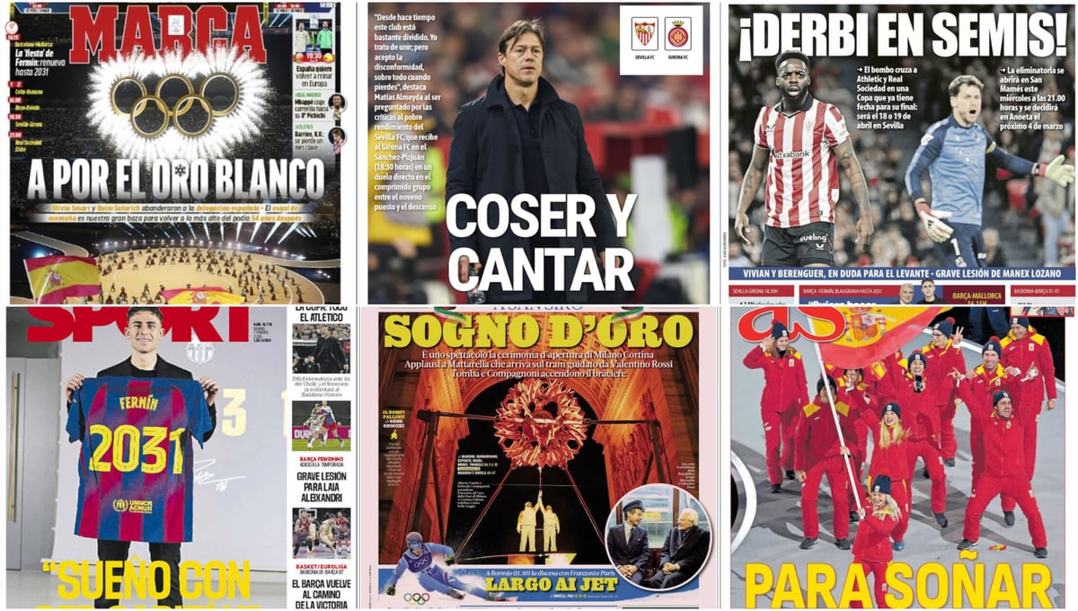 Con otra jornada de LaLiga EA Sports en marcha y tras la resaca del sorteo de semifinales de la Copa del Rey, la prensa deportiva nacional fija también su atención en los Juegos Olímpicos de Invierno de Milán-Cortina 2026