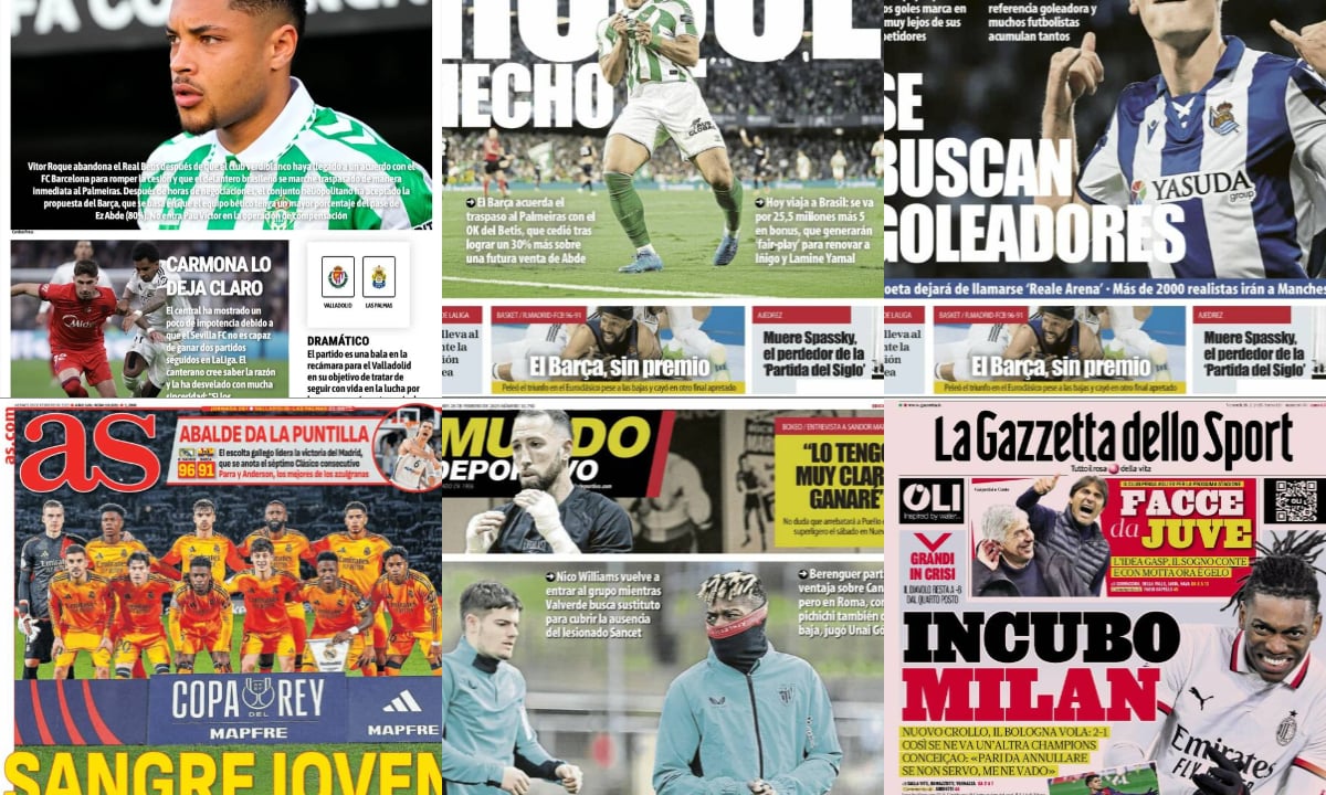 En la prensa catalana, Mundo Deportivo también hace referencia a la salida de Vitor Roque de España. "Roque hecho" titulan para aclarar que el Barcelona ha acordado con Palmeiras la operación con la aprobación del Betis. Hoy viajará a Brasil para firmar y esto permitirá a los blaugranas generar fair play para renovar a Iñigo Martínez. Sports por su parte abre con una entrevista exclusiva a Ronald Araujo y "palabra de capitán". Sin embargo, no menciona en ningún lado la salida del brasileño del club.