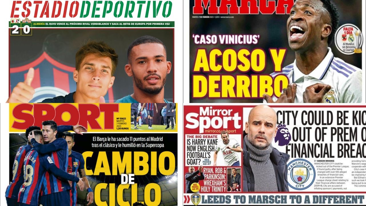 Desde Madrid anuncian un 'acoso y derribo' a Vinícius, concretamente el diario Marca, quien destaca que es el jugador de Europa que más faltas recibe, además de tener que soportar los cánticos racistas. Algo que le pasa factura en su comportamiento y rendimiento sobre el terreno de juego, pues no ha sido capaz de marcar ni asistir en los últimos ocho partidos fuera de casa en LaLiga. El diario As también recoge la polémica de Vinícius pero enfoca su portada a la 'operación mundialito' que el Madrid jugará esta semana y por lo que ya ha desplazado a Marruecos.
