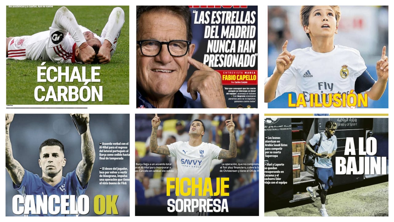 A nivel nacional, muy destacable el primer movimiento de mercadeo que ha hecho el FC Barcelona, ya que el club catalán ha logrado la cesión, para lo que resta de temporada, de Joao Cancelo que pone así fin, de manera momentánea, a su etapa en el Al-Hilal. El portugués tenía la opción de ir al Inter pero le dio prioridad absoluta al equipo que entrena Hansi Flick. Por la parte del Real Madrid, hay mucha ilusión puesta en Gonzalo García después del triplete que marcó en la última jornada de LaLiga. Un canterano que está pidiendo su oportunidad en un Real Madrid, lleno de estrellas en ataque, en donde es muy complicado tenerla. También hay que destacar que tanto el FC Barcelona como el Athletic Club están en Arabia Saudí para disputar la primera semifinal de la Supercopa de España este miércoles.